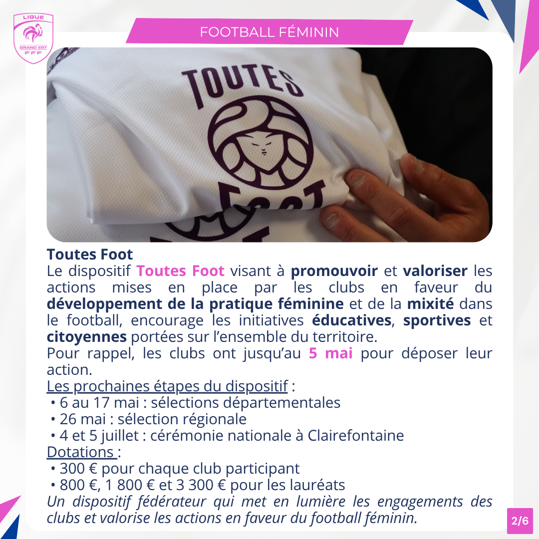 – Afin de renforcer son équipe technique, le District Meurthe-et-Moselle de Football recrute un Conseiller Technique Départemental H/F en CDI (poste basé au siège du District à Villers-Lès-Nancy) : fiche de poste. Les candidatures (CV et lettre de motivation) sont à adresser au District, à l’attention de Monsieur le Directeur, par mail : direction@meurtheetmoselle.fff.fr ou par courrier (15 Boulevard Maréchal Foch – 54.600 Villers-Lès-Nancy), avant le 19 avril 2026.