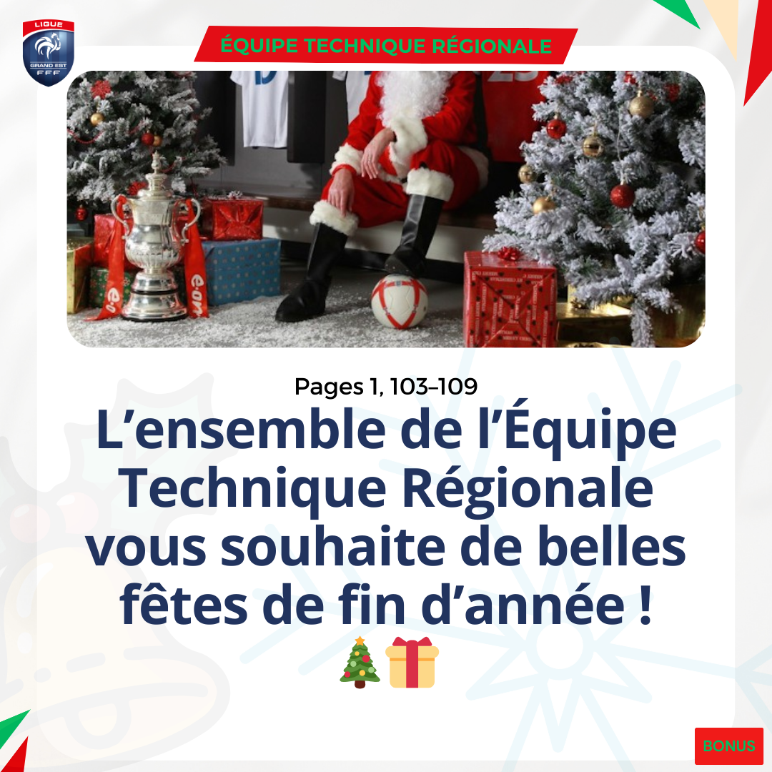 Le Président Yann Leroy, le Comité Directeur, les membres des commissions et l’ensemble des équipes de la Ligue Grand Est de Football vous souhaitent de très belles fêtes de fin d’année et anticipent une très belle année 2026 pour vous même et pour vos proches !