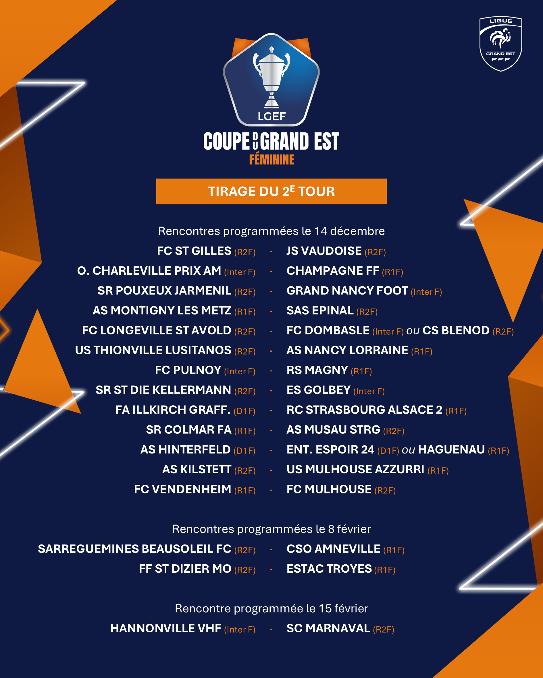 Coupe du Grand Est Féminine, le tirage du 2e tour !