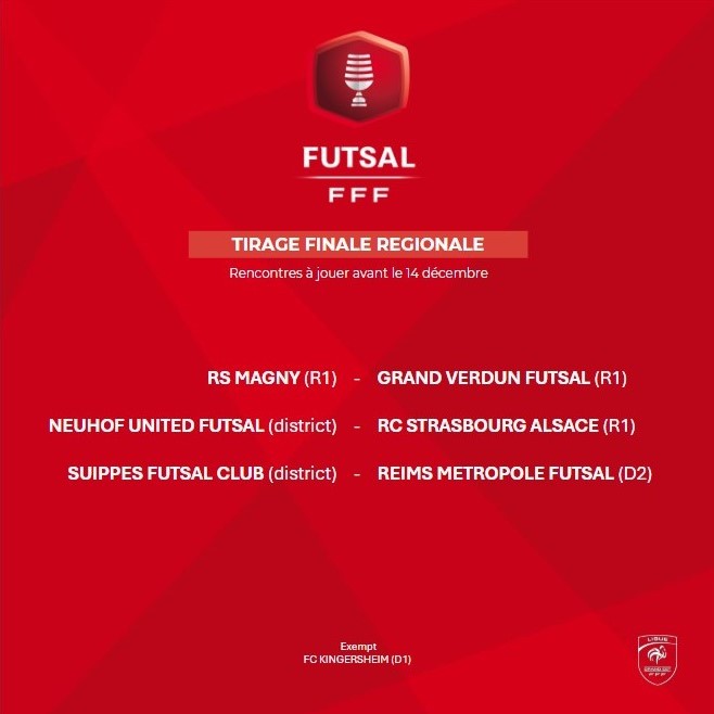 • Finale régionale : 14 décembre (entrée en lice de Reims Métropole Futsal – D2 Futsal)