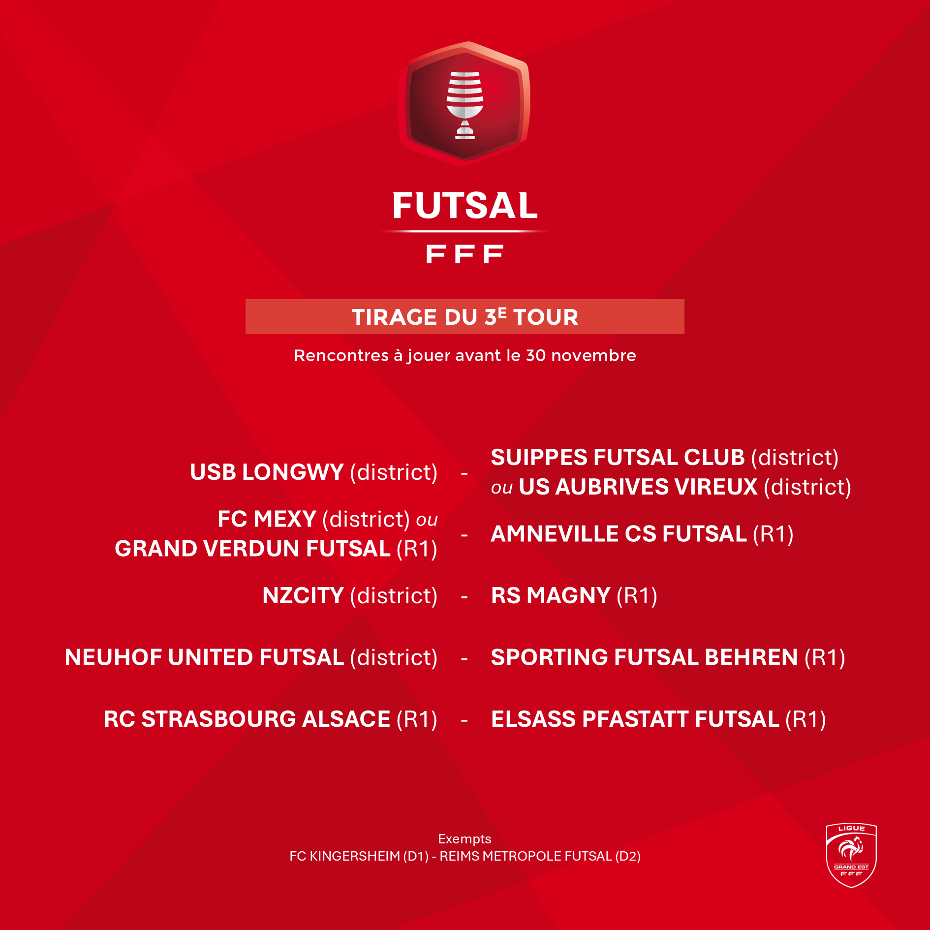 - 32e de finale : 18 janvier (entrée en lice de KINGERSHEIM D1 Futsal)