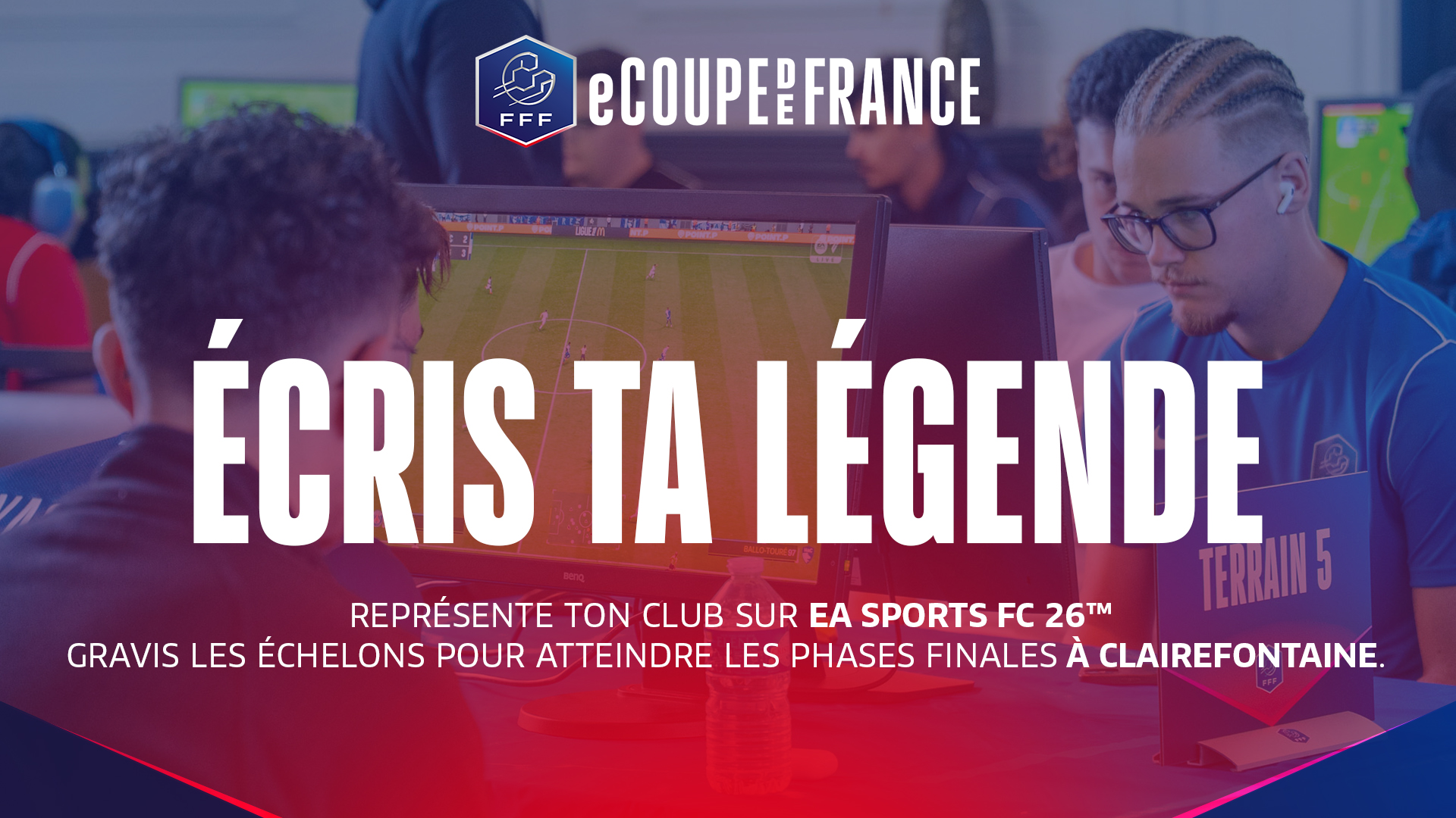La Fédération Française de Football, ses Ligues et ses Districts organisent la 3e édition de l’eCoupe de France. L’objectif ? Permettre aux licenciés FFF de représenter leur club sur la scène eFoot et de se qualifier pour la grande finale nationale. Première phase départementale, inscriptions jusqu’au 12 janvier 2026 !