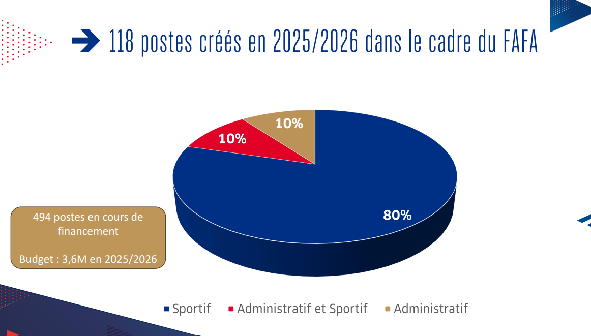 Pour cette saison 2026/2027, le dispositif FAFA Emploi prévoit une aide financière à destination des clubs employeurs à hauteur de 12.000 euros dégressifs jusqu’à 4000 euros sur 5 ans (emploi à temps plein). A noter qu’en parallèle de l’aide FAFA Emploi, les clubs peuvent également transmettre une demande auprès de l’Agence Nationale du Sport (ANS), afin de prétendre à des aides complémentaires.