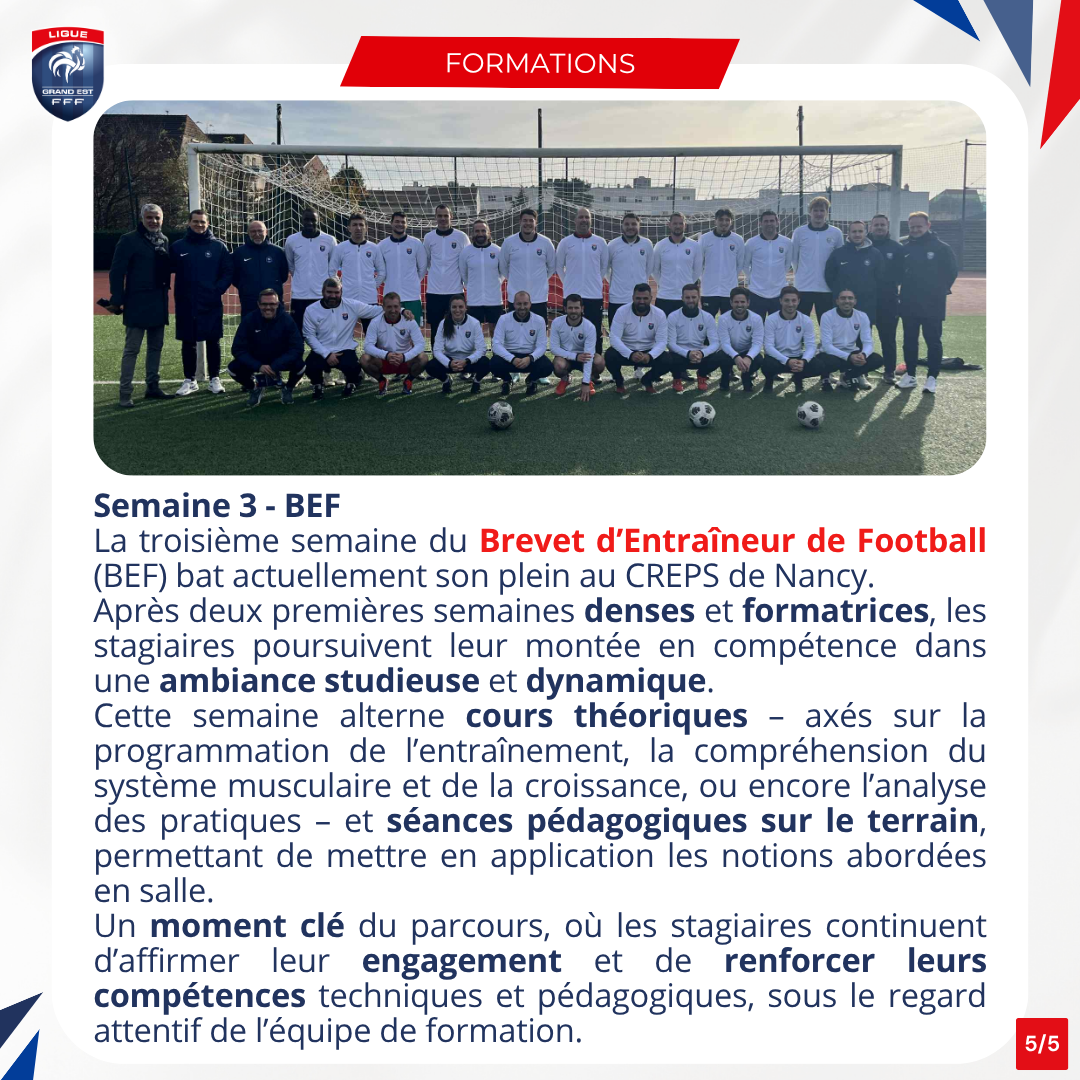 21 stagiaires en formation du BEF, brevet d'entraîneur de Football (ou BEFA, en apprentissage) ont été re...